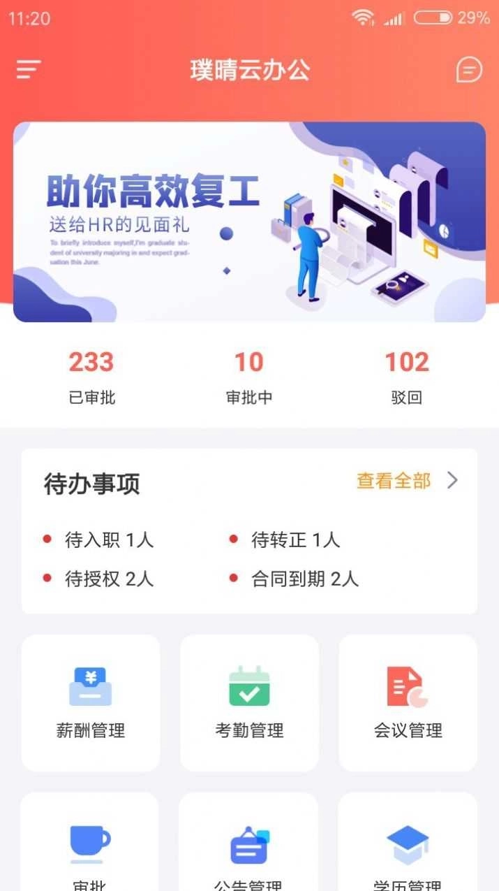 璞晴云办公是一款相当好用的移动办公应用,它主要为企业HR提供服务支持。所有在平台上登记的工作事项,都会在截止日期前提前发出提醒,确保用户不会遗漏任何一项事务。该软件支持在线审批各类人事相关的申请,比如入职申请、转正申请、加班申请等。此外,用户还能借助系统辅助进行薪资管理和计算。