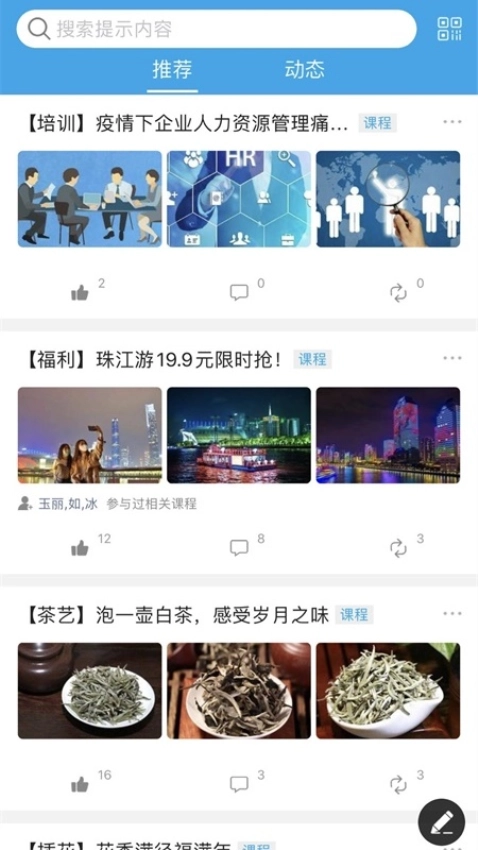进入应用后,你会看到系统为你推荐的各类内容,包括培训、福利、茶艺等信息,你可以根据自己的需求自由浏览查看。