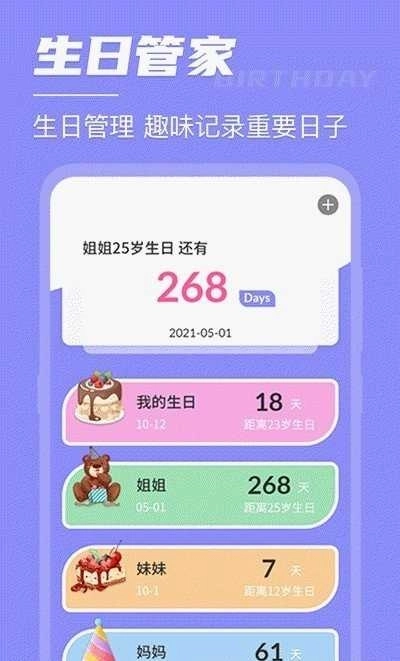 5、管理生日记录信息,切换至生日管家中心后,即可查看其中的生日列表以及生日倒计时。