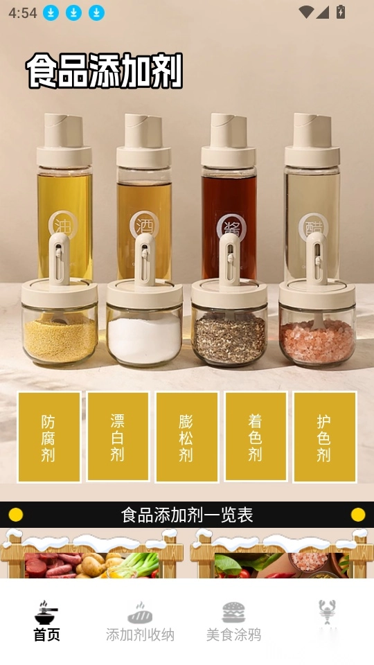 食品添加剂加点料助力用户便捷查询食品添加剂,各类添加剂均可一键查看,便于深入了解并轻松收纳相关添加剂,从而知晓其用处与危害,学习更多添加剂知识;同时,用户还能对相关美食进行趣味涂鸦,轻松创作、简单上手。