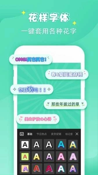 4、数百种文字便签样式可一键套用,还有丰富的花样字体,各类花字也能一键使用。