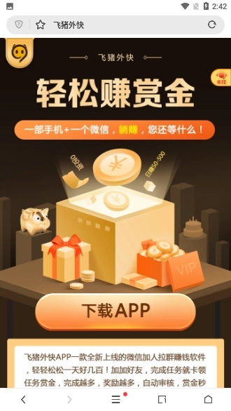 飞猪外快是一款十分优秀的手机赚钱应用。平台上有海量赚钱任务可供自由挑选,每个任务都设有相应佣金,完成任务即可获取可观的收入回报。操作简单,只需动动手就能赚钱,任务持续更新,随时都能参与,轻松赚取零花钱。此外,还能邀请好友加入,获得更多分红收益,绝对值得你拥有!