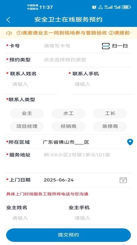 2、登录成功后,可在线编辑并提交预约信息,系统会快速匹配到合适的师傅。