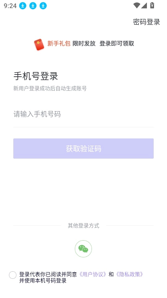 2、在账号登录界面输入自己的账号,然后点击“获取验证码”按钮以完成平台登录验证。
