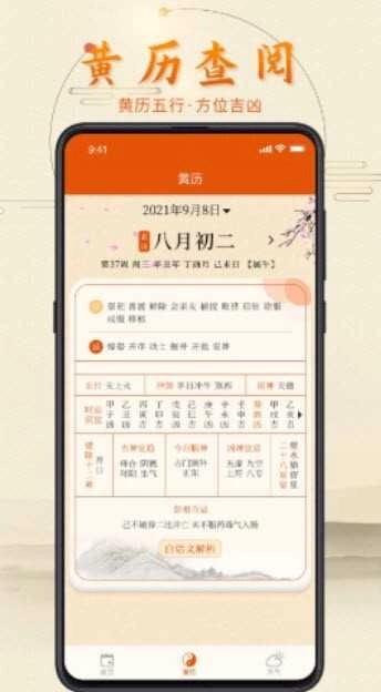 3.借助符合中国特色的黄历信息在线查询功能,助你知晓当日最新运势,以便更合理地规划每日行程安排。
