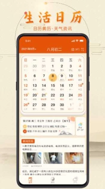 4.把公历、农历和独具特色的黄历相融合,能够在日历上标注节日、纪念日等各类重要日期。