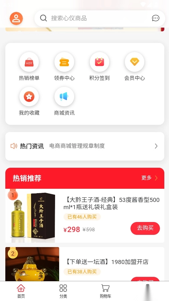 平台会实时推荐各类热销商品,用户能够优先挑选这些热销商品并完成在线购买。
