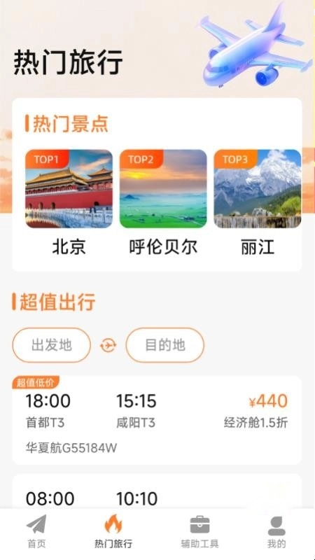 特价机票低价飞是一款专注于特价航班机票查询的应用,用户可通过它实时查询所需航班的特价信息,快速了解机票优惠,轻松获取各类机票折扣详情,进而实时掌握航班动态、快速完成预订,合理规划行程。平台还会推荐众多热门旅游景点,用户能查看景点热门排行榜,找到心仪景点后直接预订机票出行,享受优惠折扣,实现超值旅程;另外,特价机票低价飞纯净版配备了实用的出行辅助工具,如低价提醒、指南针、特殊关怀等功能,方便用户按需使用,让出行更轻松。有需要的用户不妨立即来本站体验!