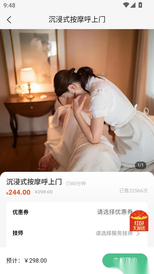 可以一键在线预约喜欢的按摩技师,任意在线挑选;