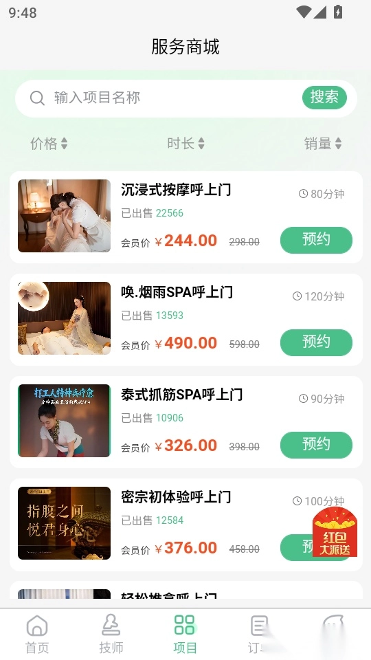 软件拥有高质量的按摩与推拿项目服务,分类超多;