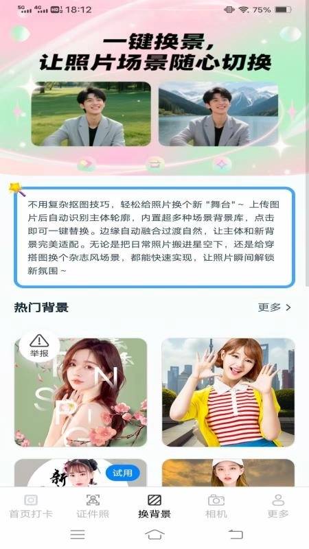 我们的背景更换模式十分智能,能让用户轻松完成精美的背景替换,充分满足使用需求。