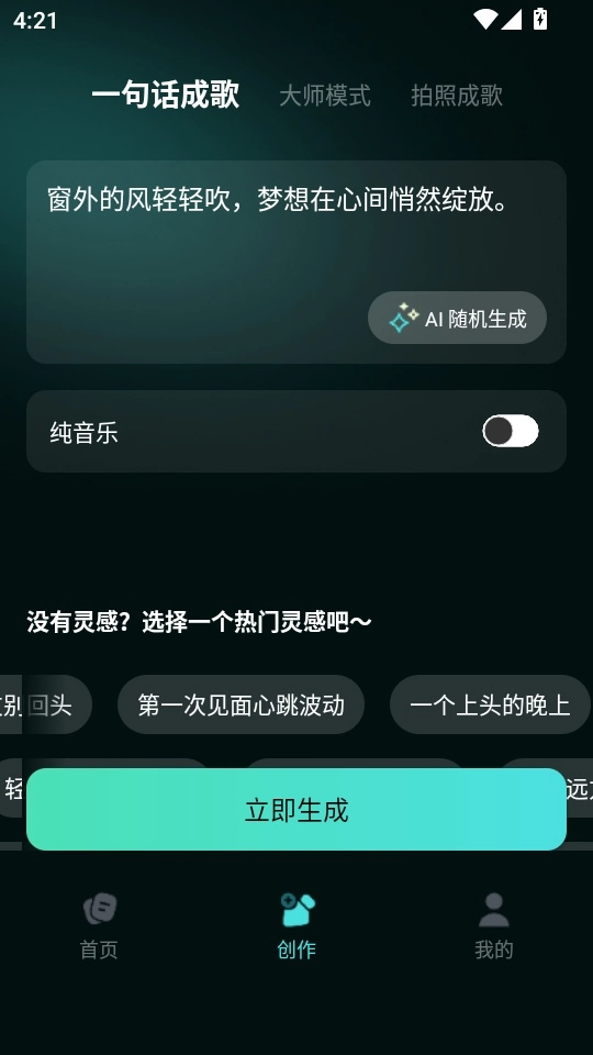 4. 接着输入“一句话”,或者点击“AI随机生成”按钮,之后再点击“立即生成”按钮即可完成操作。