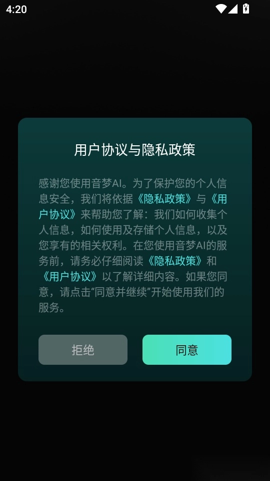 1. 第一步打开软件,仔细阅读协议和隐私政策,之后点击“同意”按钮进入