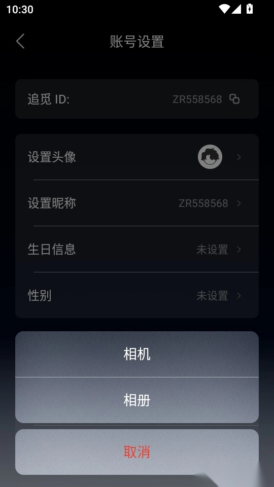 5.这样一来,用户点击“设置头像”选项,就能从相机拍摄或相册中选取并导入自己喜欢的头像了。