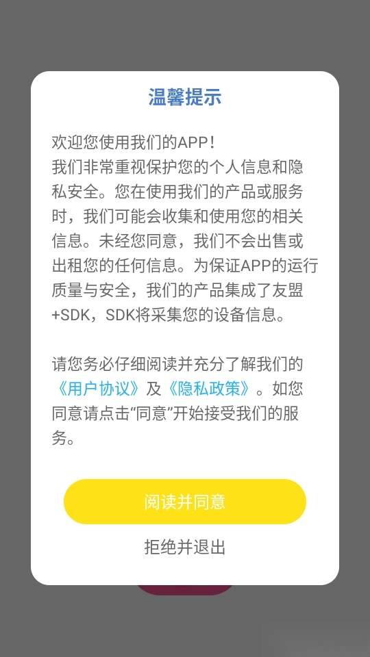 1.首先打开软件点击“阅读并同意”按钮进入