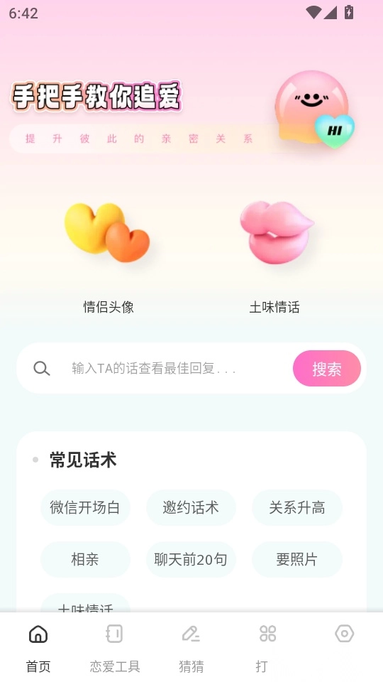 萤火虫聊天话术是一款专注于聊天话术和恋爱宝库教学服务的应用软件。这里汇聚了极为丰富的聊天话术资源,能轻松满足不同用户学习情爱话术知识的需求。平台提供了大量聊天攻略与方法技巧,让大家可随时学习新的恋爱话术技巧,掌握更多高质量的话术课堂内容。此外,平台还精选了众多恋爱宝库案例,帮助用户轻松找到实用的追爱方法与经验。值得一提的是,在萤火虫聊天话术软件中学习相关知识完全免费,且干扰。对这款软件感兴趣的小伙伴,不妨来本站体验一番!