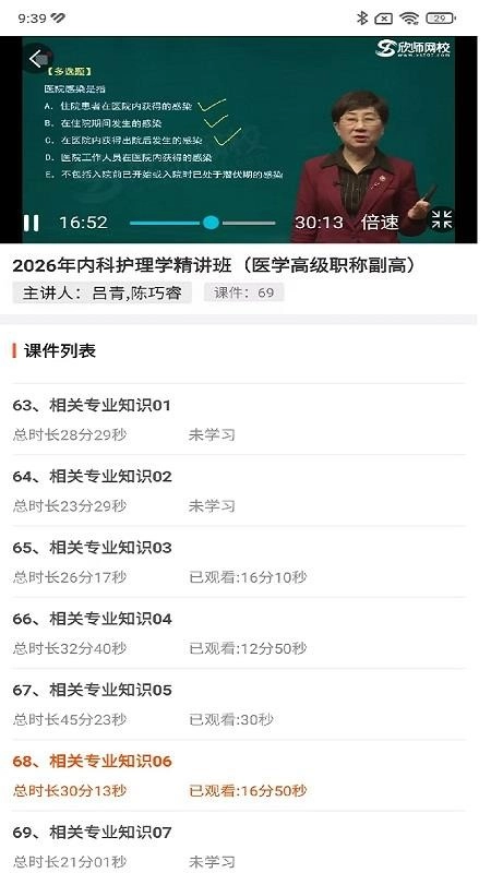 1、用户能够在软件里查找各类所需的课程资源,并开展在线学习。