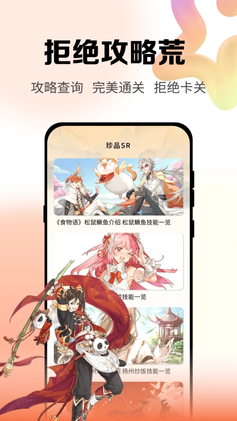 1、用户可在软件里查看各类食物语攻略内容,从而掌握通关技巧;
