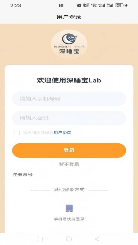 1、在线并打开深睡宝,可直接使用号快捷登录使用;