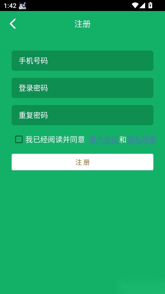 2. 随后,大家依次输入账号、登录密码和重复密码,勾选“我已经阅读并同意”选项,再点击“注册”按钮完成账号注册。