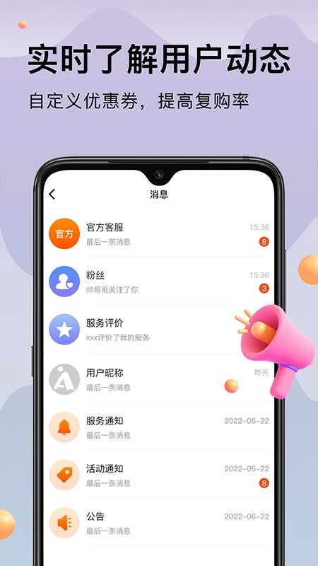 5、也能实时掌握用户动态,便捷查看客户消息。