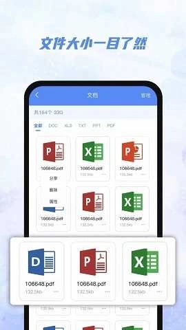 1、能清晰查看每个文件的大小属性,还可快速将其分享给好友。