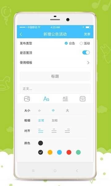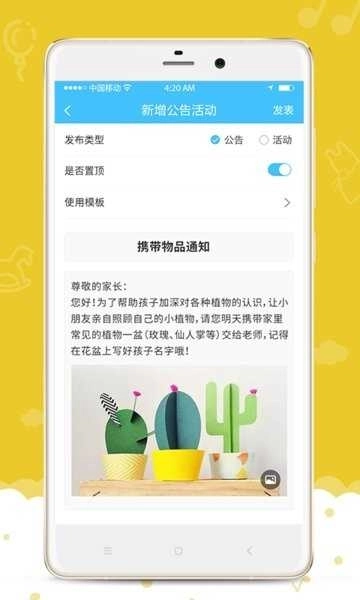 发布幼儿园的动态资讯,将最新通知公告第一时间传达给家长。