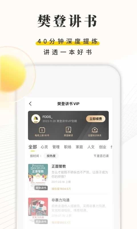 【樊登讲书】(非电子书、有声书)借助音频、视频、图文等多元形式呈现丰富内容,核心聚焦书籍精华解读——由樊登针对各类精选书籍展开深度提炼,用40分钟把一本好书讲透彻。无论是排队等候、与人相约的间隙,还是做家务、早晚洗漱,或是开车乘车途中,都能随时随地收听学习。