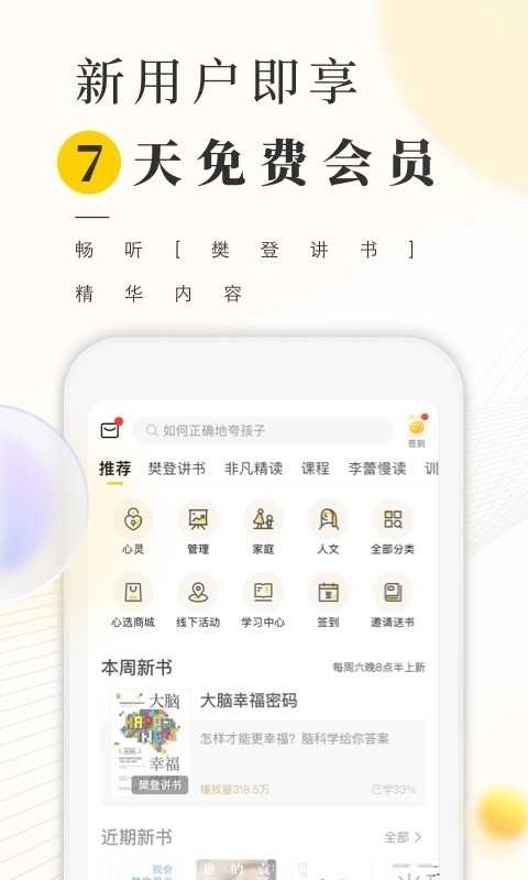 樊登读书会免费听堪称有声阅读的得力工具,平台内整合了多样化的功能模式,用户能够依据自身需求灵活挑选。这里提供书籍精华解读服务,是一款优质的线上知识服务软件,赶紧来体验樊登读书会免费听吧!