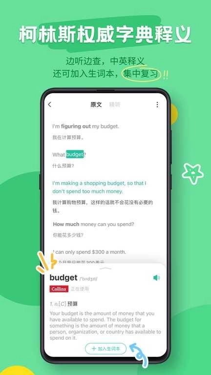 秉持扇贝一贯的卓越品质,学习过程中遇到的每个生词都能即时纳入个人学习计划,借助扇贝强大的记忆体系展开学习。友好的小组社区,使你在英语学习的道路上不再独自前行。通过打卡助力你坚持下去,已有千万小伙伴都实现了用扇贝持续学习英语。
