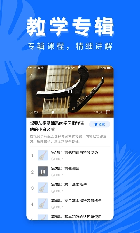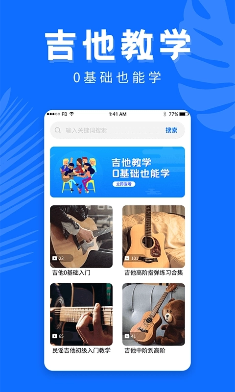 吉他学习(学吉他)是一款提供在线吉他教学服务的手机应用程序。会弹吉他的人往往自带独特魅力,演奏时总能吸引旁人的目光,因此不少人都渴望学习吉他。这款应用内收录了丰富的吉他乐谱,还整合了海量优质的线上吉他教学资源。用户通过它可以快速掌握吉他学习技巧,同时还能查阅各类音乐相关资料,有需求的朋友不妨一试。