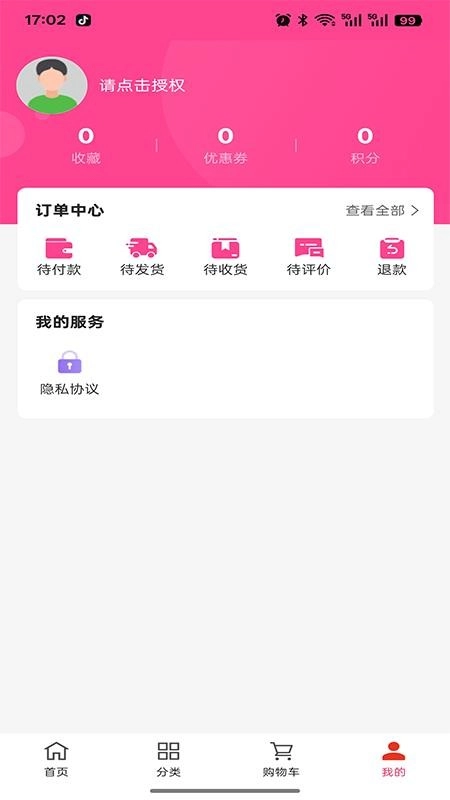 5、在个人中心即可查看我的订单、收藏、积分及优惠券等信息,操作简单便捷;