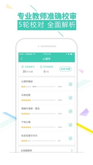 3.四大核心模块:包含模块专项练习、自由组合试卷、实战模拟演练、全真考试模拟这四种不同模式,支持随时随地随心练习。