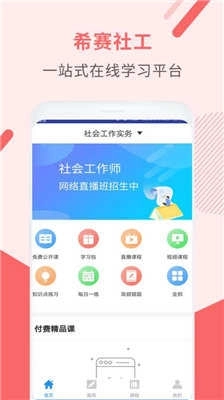 希赛助理社会工作师直播课堂,支持实时上课、实时沟通、实时解答,还设有实时免费公开课。