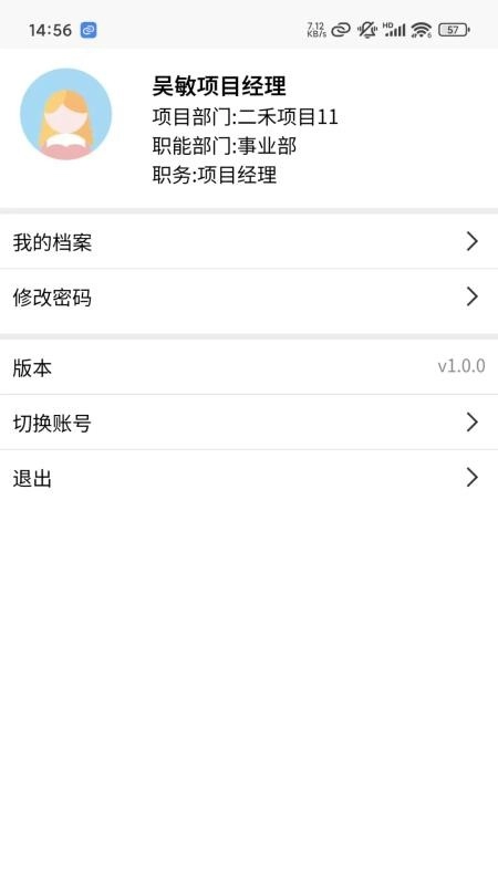 5、在个人中心可进行查看个人档案、修改密码、切换账号等操作;