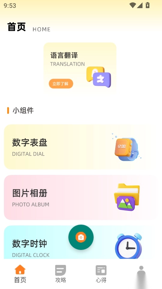 2. 进入软件首页界面后,找到底部菜单栏中的“攻略”按钮选项