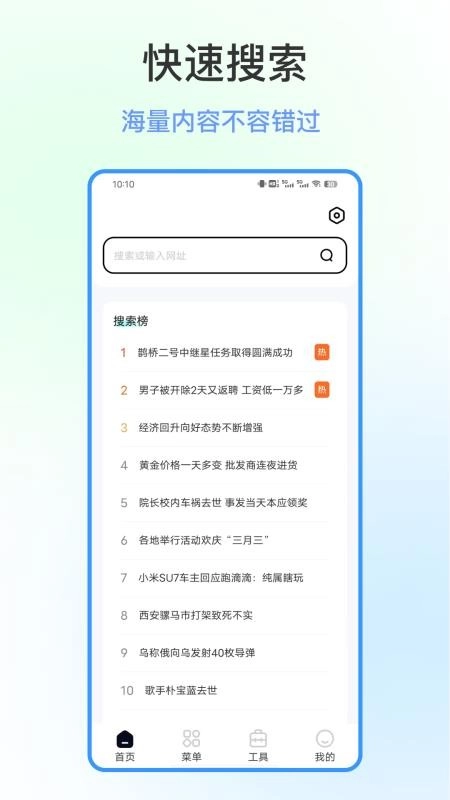 具备强大的搜索能力,能一键搜索内容与网址,便捷快速地获取网页信息。