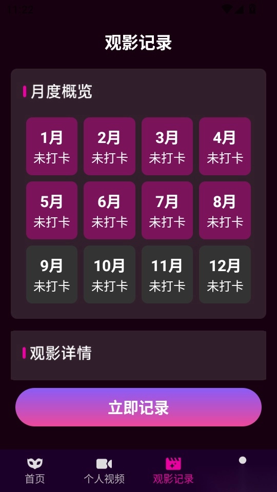 3. 接着在新的功能页面里,找到“观影详情”板块下方的“立即记录”按钮,点击该按钮进入下一步。