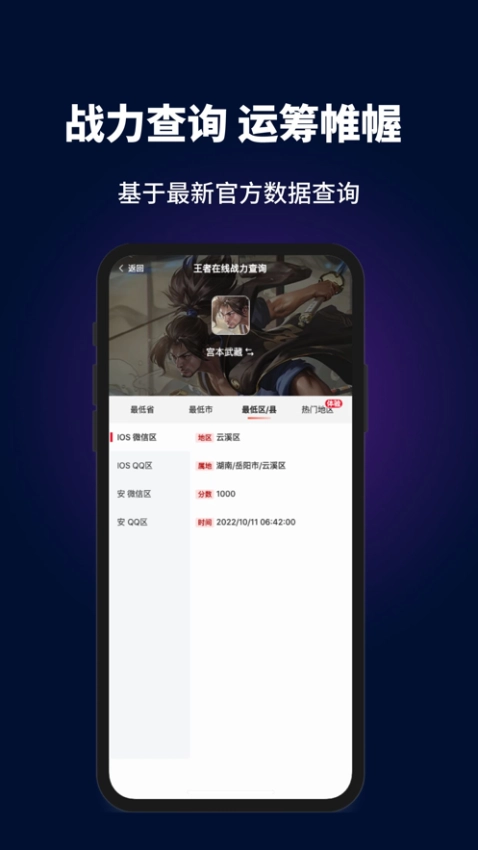 可以实时查询所需的王者战力,助你轻松查看热门展区,实时了解榜单详情。