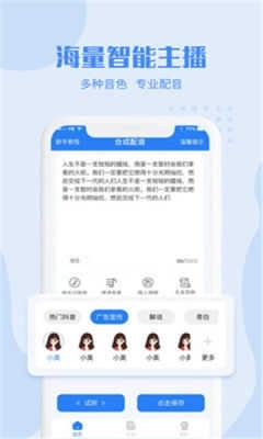 4.丰富配音资源:平台提供大量主播声音可供挑选,用户还能通过查看主播的配音案例来辅助选择使用。