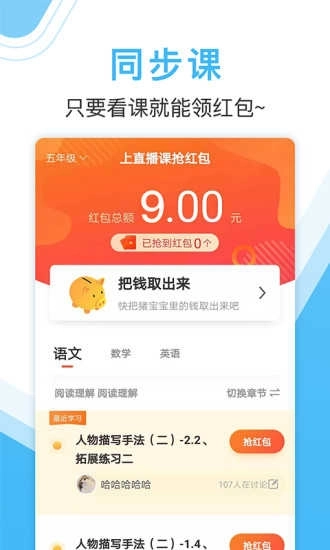1.现在邀请同学注册作业大师或者购买课程,都会赢得现金红包,具体规则见首页任务;