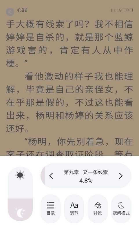 4、个性化阅读设置:支持章节调整、夜间模式切换、翻页效果选择、阅读背景更换、字号大小调节等功能,让您随心定制,享受舒适的阅读体验;