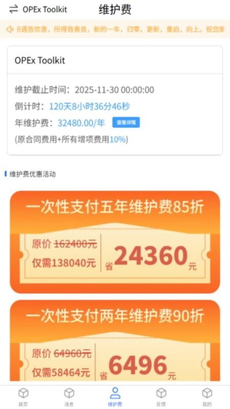 3、在维护费板块,您可以详细了解维护费的价格与时间,还能享受相应的优惠福利。