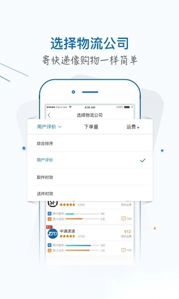 4. 支持一键呼叫快递员上门取件,用户可自主从多家物流服务商里挑选合适的进行合作;