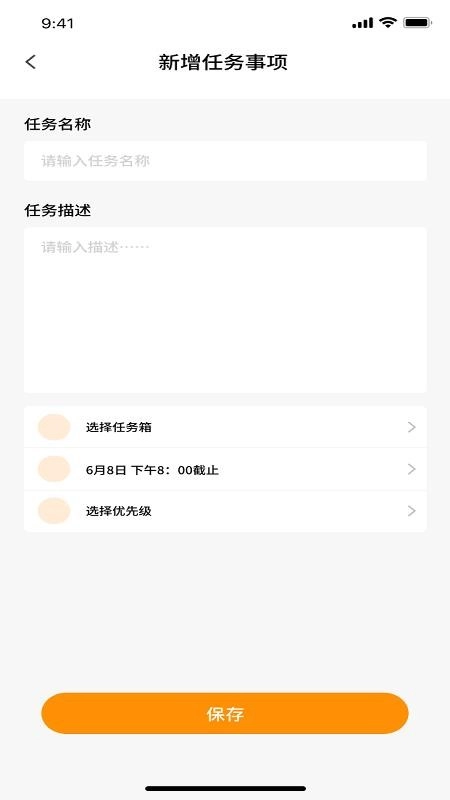 把新增的任务事项详细描述清楚,再填写好任务名称和任务截止日期时间,一键就能保存记录。