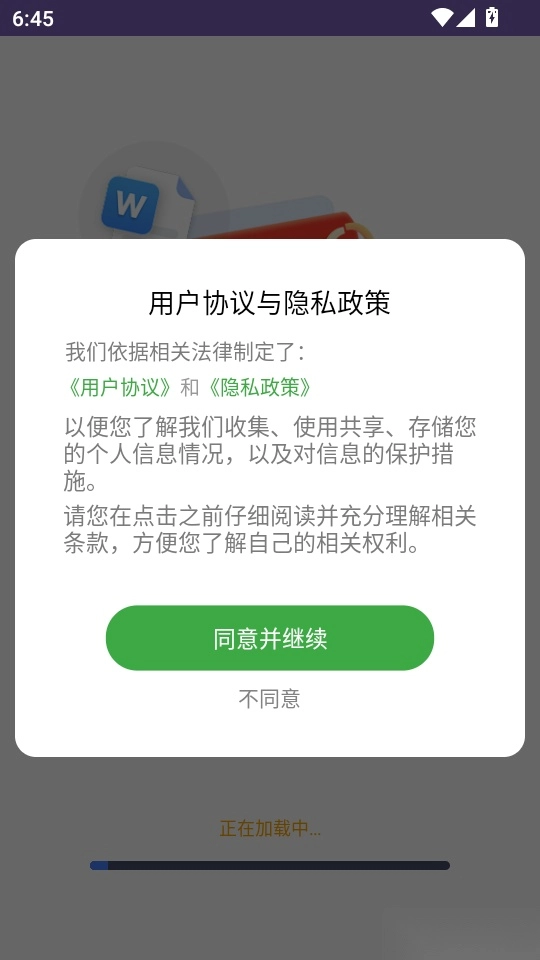 1.首先打开软件点击“同意并继续”按钮进入下一步