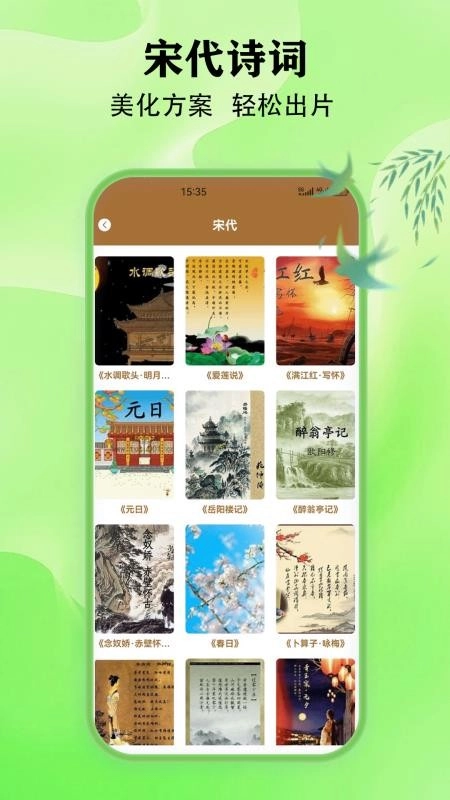 呈现了针对宋代诗词内容的美化策略,助力用户便捷产出优质作品,达成精致的封面呈现效果。