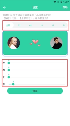 3、上方可选择需调整边距的组件尺寸,拖动下方的调整条即可进行设置,完成后保存即可。