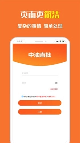 1、用户打开中油直批最新版本的软件,进入登录页面后,若已有账户可直接登录;若无账户,则勾选协议后点击“注册”按钮即可完成注册流程。