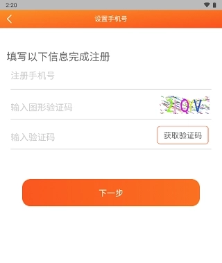 2、在注册页面中输入手机号和验证点击“下一步”。